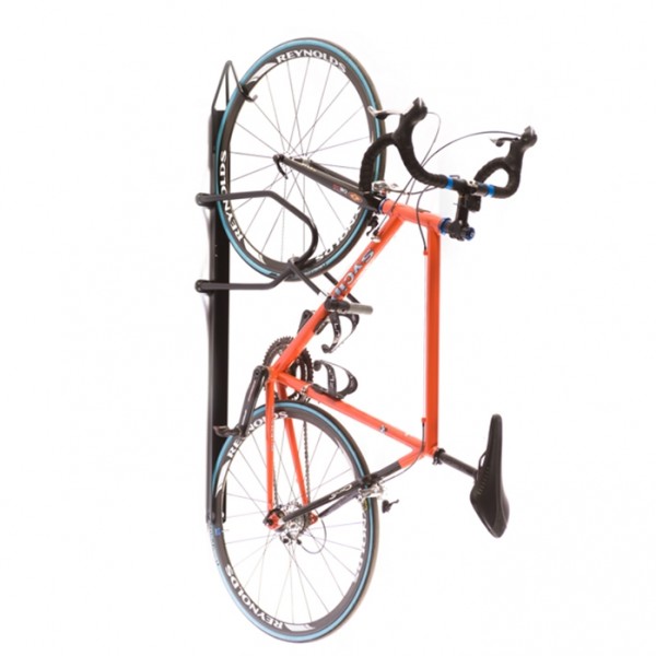 Get your bikes up of the floor and save valuable space with our popular 'track and lock' style wall mount bicycle rack. Each rack will store a single bike and allows both the frame and wheels to be locked if required. The rack features a sturdy steel construction and a black powdercoat finish.